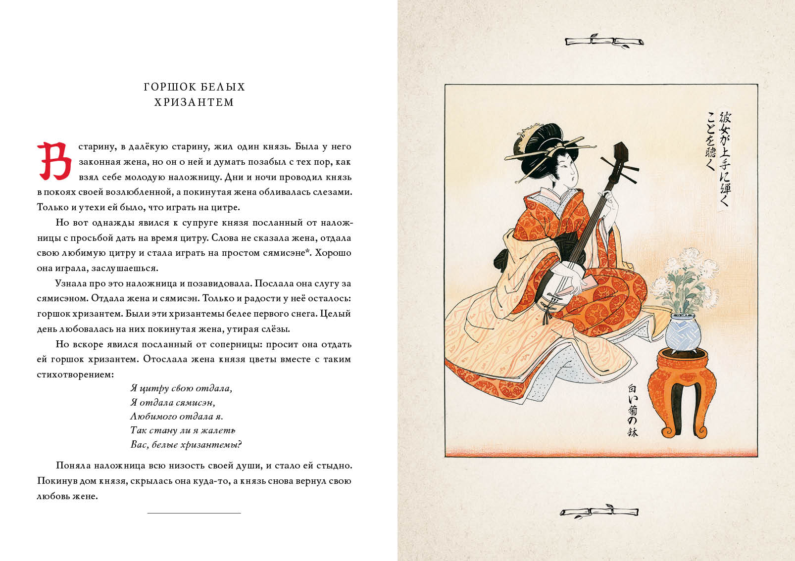 Японские сказки отличаются самобытностью и тонким чувством прекрасного. Оригинальность сюжета, поэтичность и утончённость образов позволяют читателю глубже понять древнюю культуру и обычаи Страны восходящего солнца и отражают неизменную любовь японцев к природе. Цветение сакуры, красная листва клёнов, первый снег — не просто фон для повествования, но почти что самостоятельные персонажи.