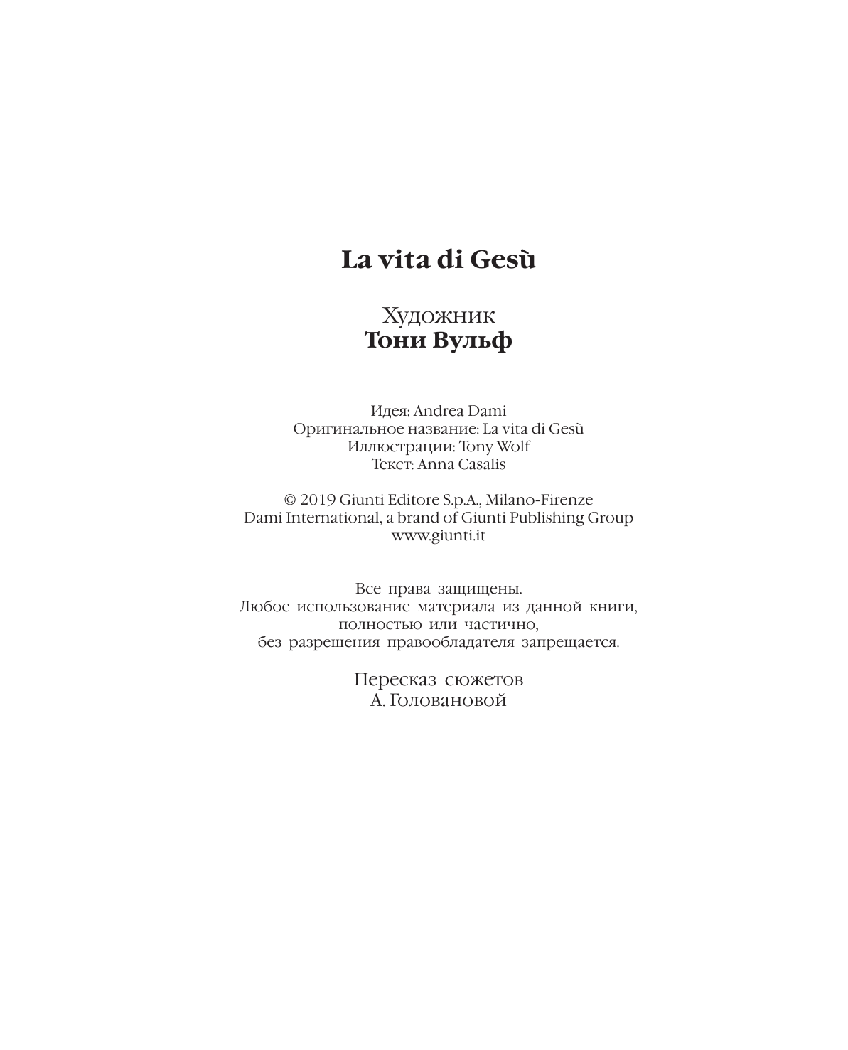 то такой Иисус? Каким Он был? Что нужно о Нём знать и почему об Иисусе до сих пор так много говорят? На эти вопросы ответит "Детская Библия". Жизнь Иисуса Христа, от Рождения до Воскрешения и Вознесения, рассказана специально для юного читателя — просто и понятно. Иллюстрации к этим сюжетам нарисовал Тони Вульф — знаменитый итальянский художник, который проиллюстрировал множество книг для детей.
