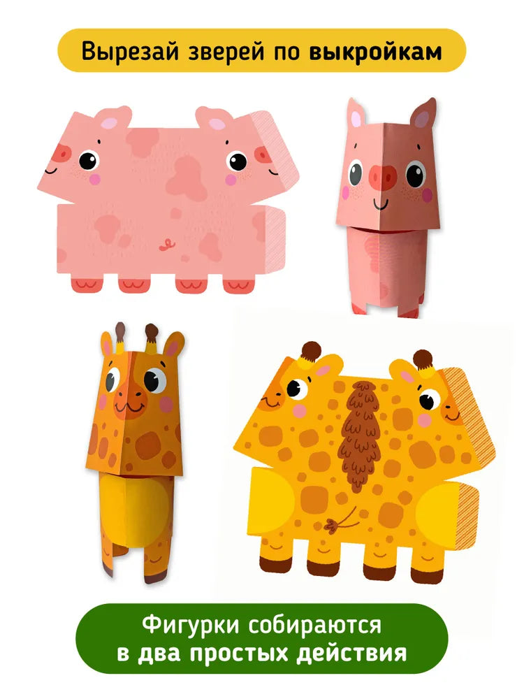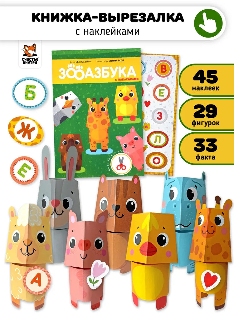Книжка-вырезалка "Зооазбука" — это не просто книга, а настоящая мастерская творчества! Под руководством взрослых вы сможете вырезать, складывать и склеивать забавных зверей по простым выкройкам. Всего два шага — и ваши бумажные фигурки готовы к игре! А чтобы сделать процесс еще более увлекательным, украсьте их яркими наклейками, развивая тактильные и сенсорные навыки.