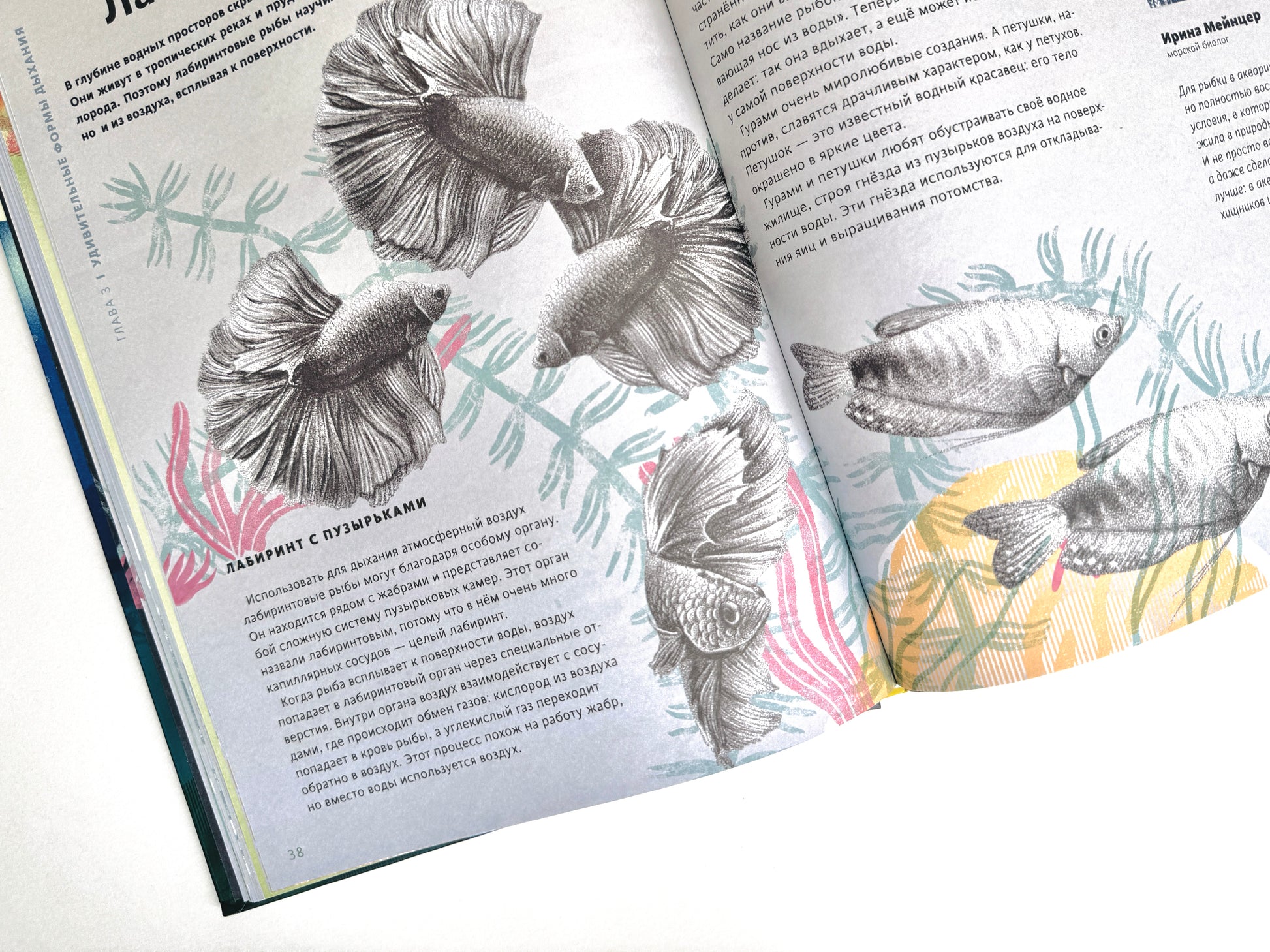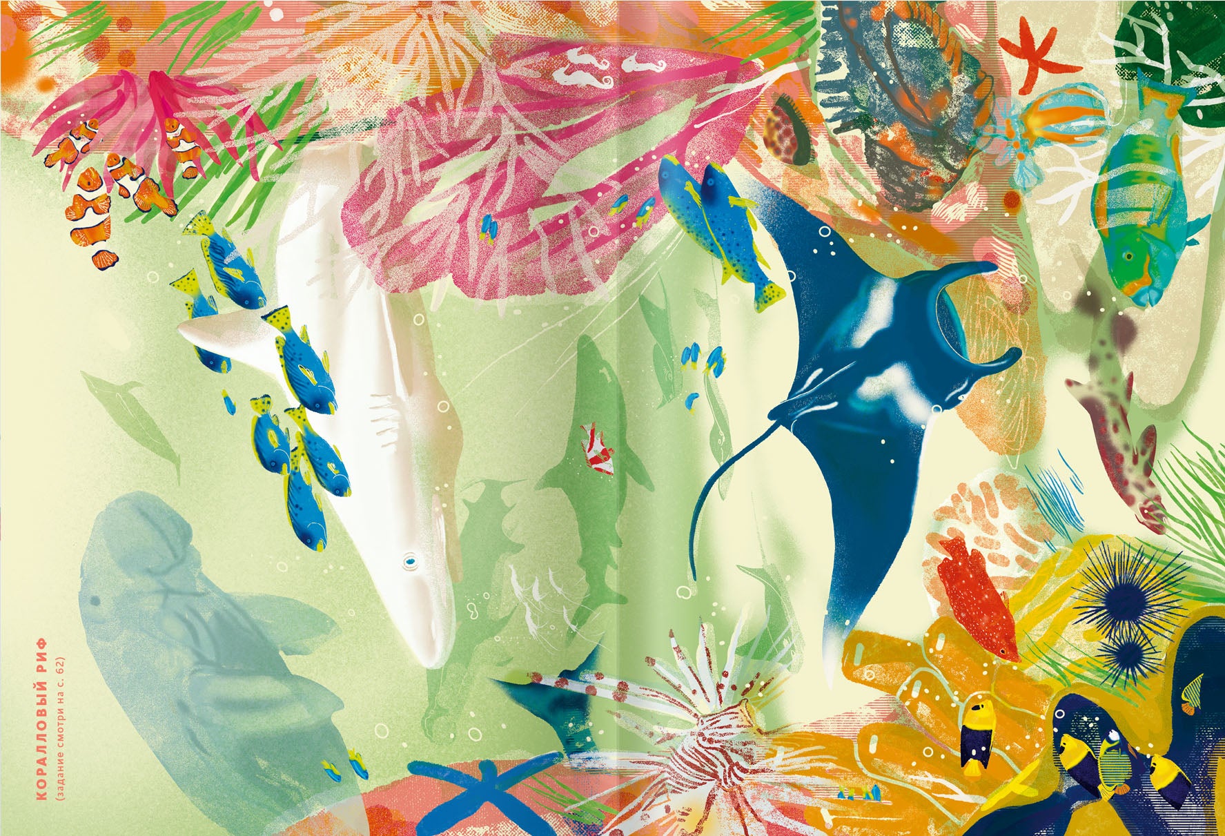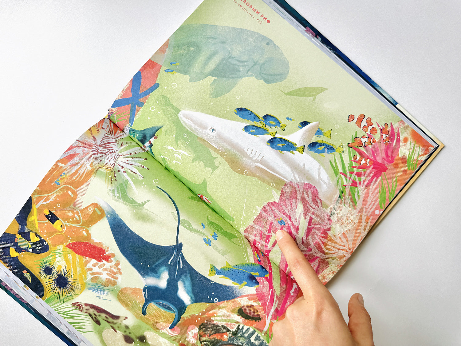 Яркие развороты в духе виммельбуха покажут обитателей дальневосточных морей и коралловых рифов, предлагая сыграть в игру «Найди и покажи». А опыты помогут закрепить полученные знания.