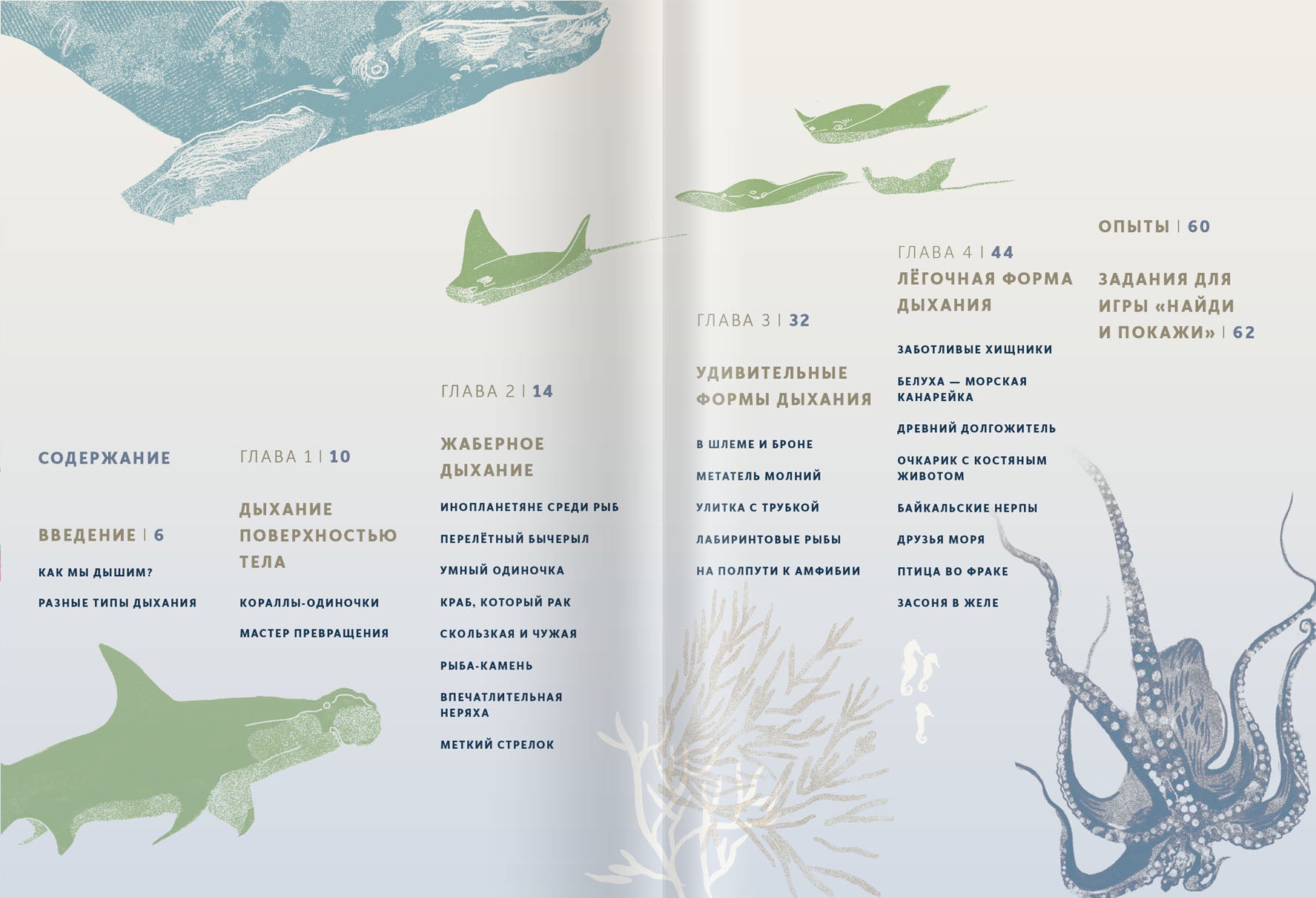 Как дышат животные, чья жизнь проходит в воде или около неё? Если ты кит, пиранья, нерпа или осьминог, чем ты дышишь? В новой иллюстрированной энциклопедии биологи рассказывают о типах дыхательной системы. Вы знали, что водные обитатели дышат не только жабрами, но и лёгкими и даже поверхностью тела?