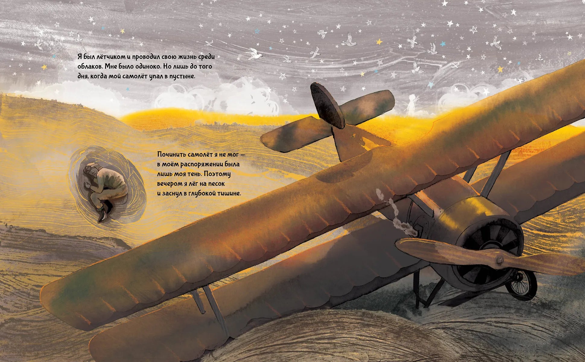 Однажды утром оказавшийся в пустыне пилот проснулся оттого, что на него глядел необычный мальчик. "Пожалуйста, — попросил он, — нарисуй мне барашка". Лётчик вынул из кармана карандаш и бумагу, и так началась удивительная история о том, что же действительно важно в жизни…