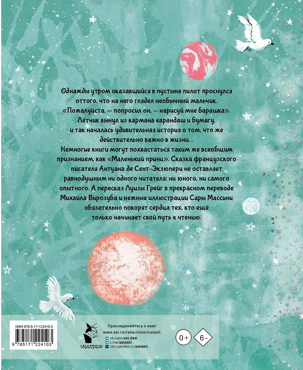 Немногие книги могут похвастаться таким же всеобщим признанием, как "Маленький принц". Сказка французского писателя Антуана де Сент-Экзюпери не оставляет равнодушным ни одного читателя: ни юного, ни самого опытного. А пересказ Луизы Грейг в прекрасном переводе Михаила Вирозуба и нежные иллюстрации Сары Массини обязательно покорят сердца тех, кто ещё только начинает свой путь к чтению.