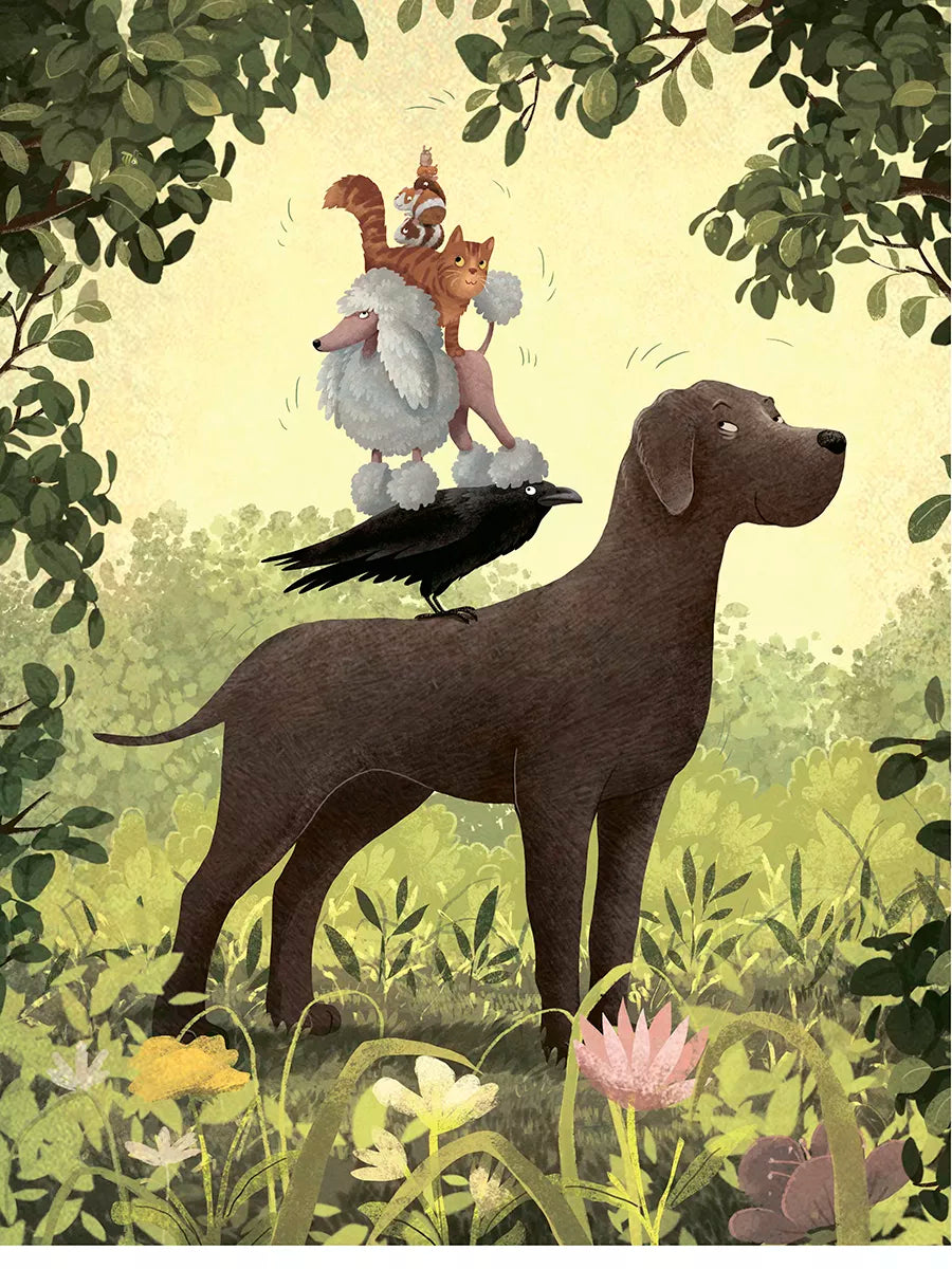 — А если большой пёс, и чёрный ворон, и пудель, и полосатая кошка, и морские свинки, и все хомячки станут друг на друга, то они будут большими, как мир?