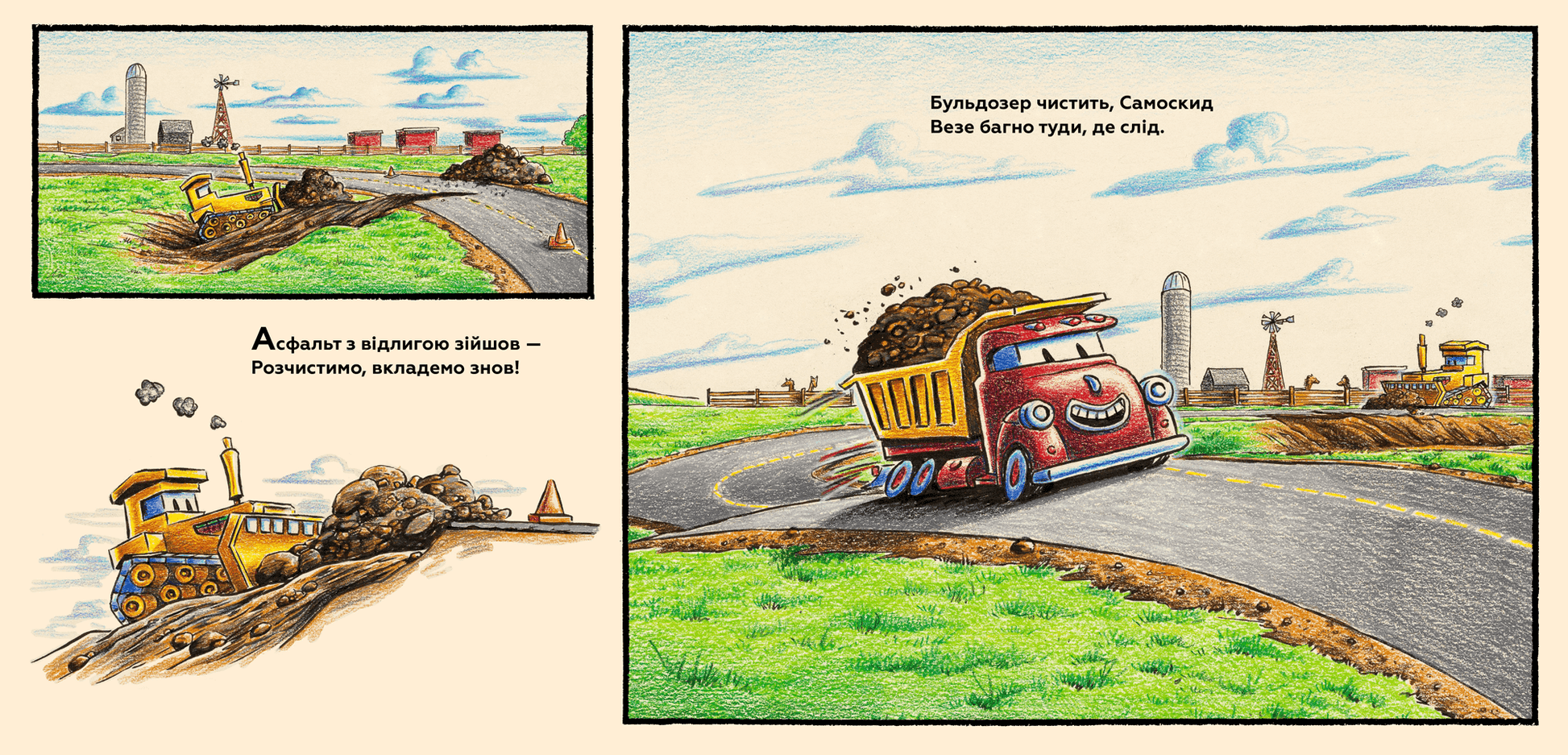 • Грайливі римовані рядки і жваві ілюстрації знайомлять малюків з новою історією про командну працю, яка припаде до смаку навіть найвигадливішим юним будівельникам по всьому світу.