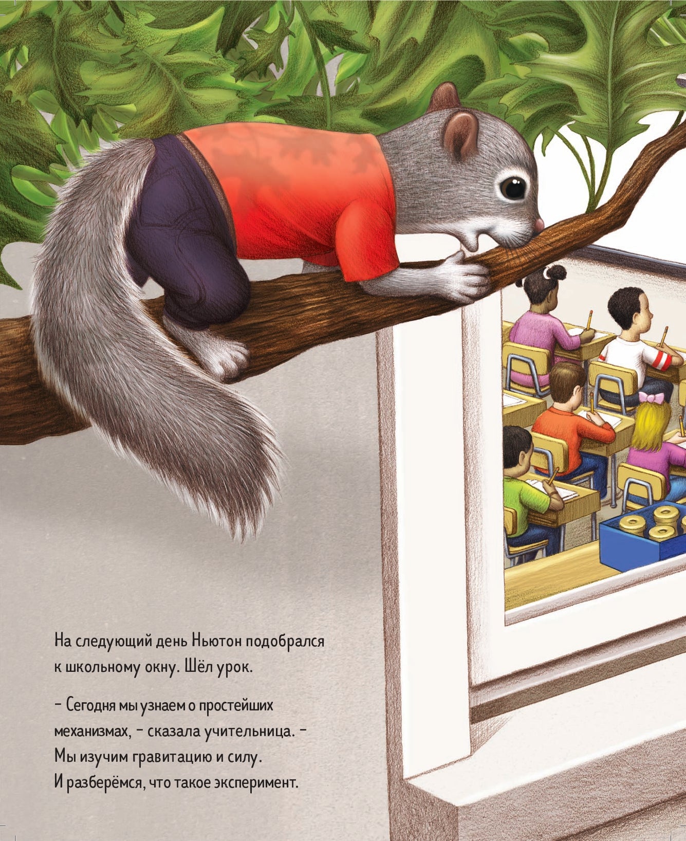 Конечно, ему повезло – ведь он может сидеть у раскрытого окна и слышать все то, о чем рассказывает учительница в школе детям. Это побуждает его и сестренку начать проводить собственные эксперименты. И они понимают, что наука – она для всех, даже для белок.