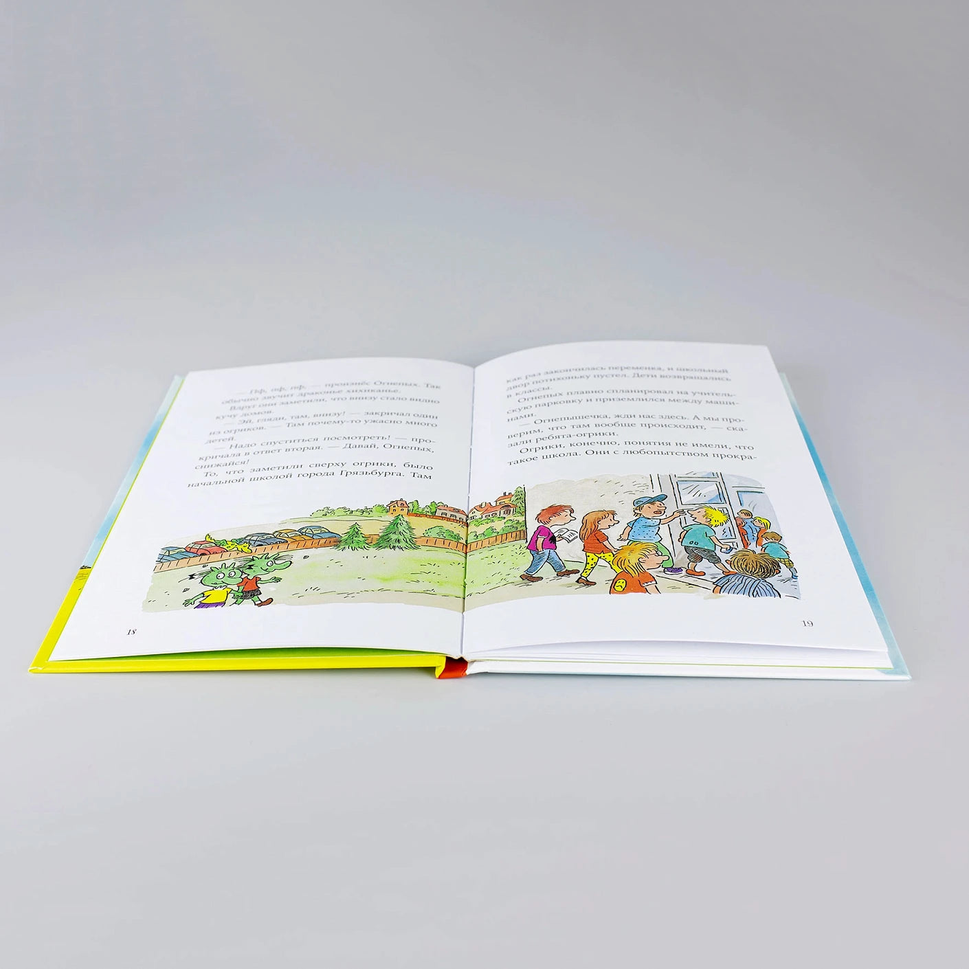 Но огрики на то и огрики, чтобы придумывать себе приключения! Они вскочили на Огнепыха, полетели, куда глаза глядят и остановились… у школы!