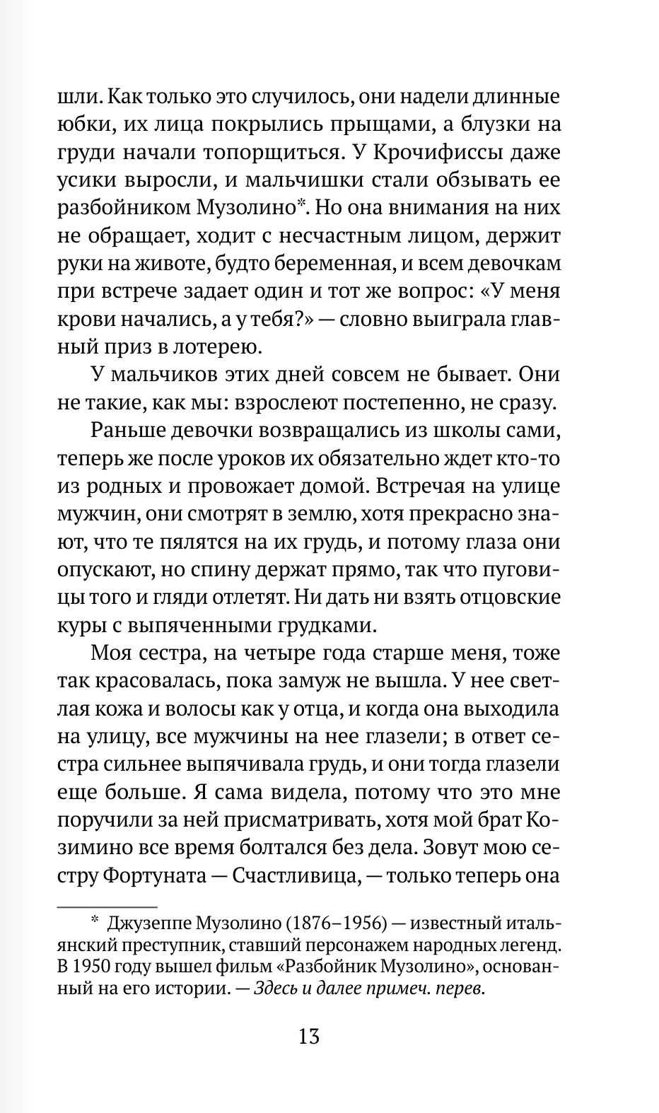 Роман Виолы Ардоне — о становлении личности. О девочке, которая хотела быть свободной в эпоху, когда родиться женщиной было приговором. Автор удивительным образом превращает историю реальную в художественную, в повествование о противоречиях любви, отношений отцов и дочерей, матерей и дочерей, о желании, которое одновременно влечет и пугает, особенно если его реализуют при помощи силы.