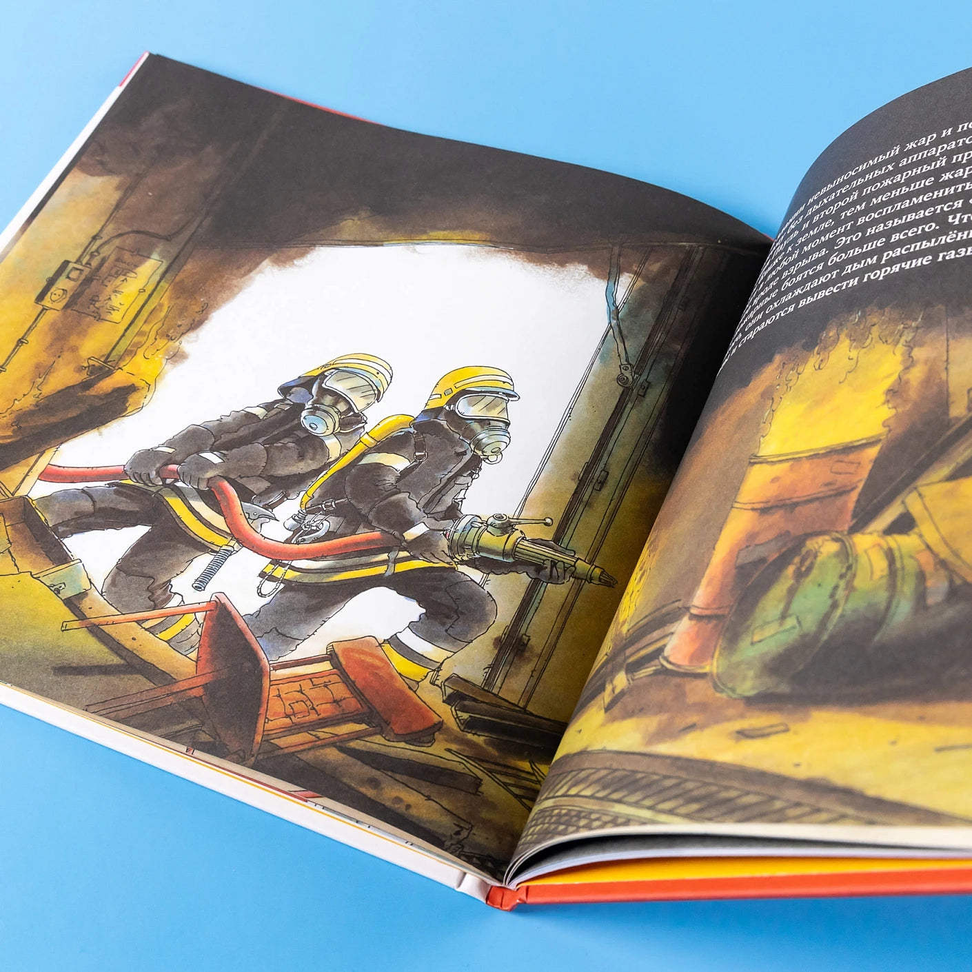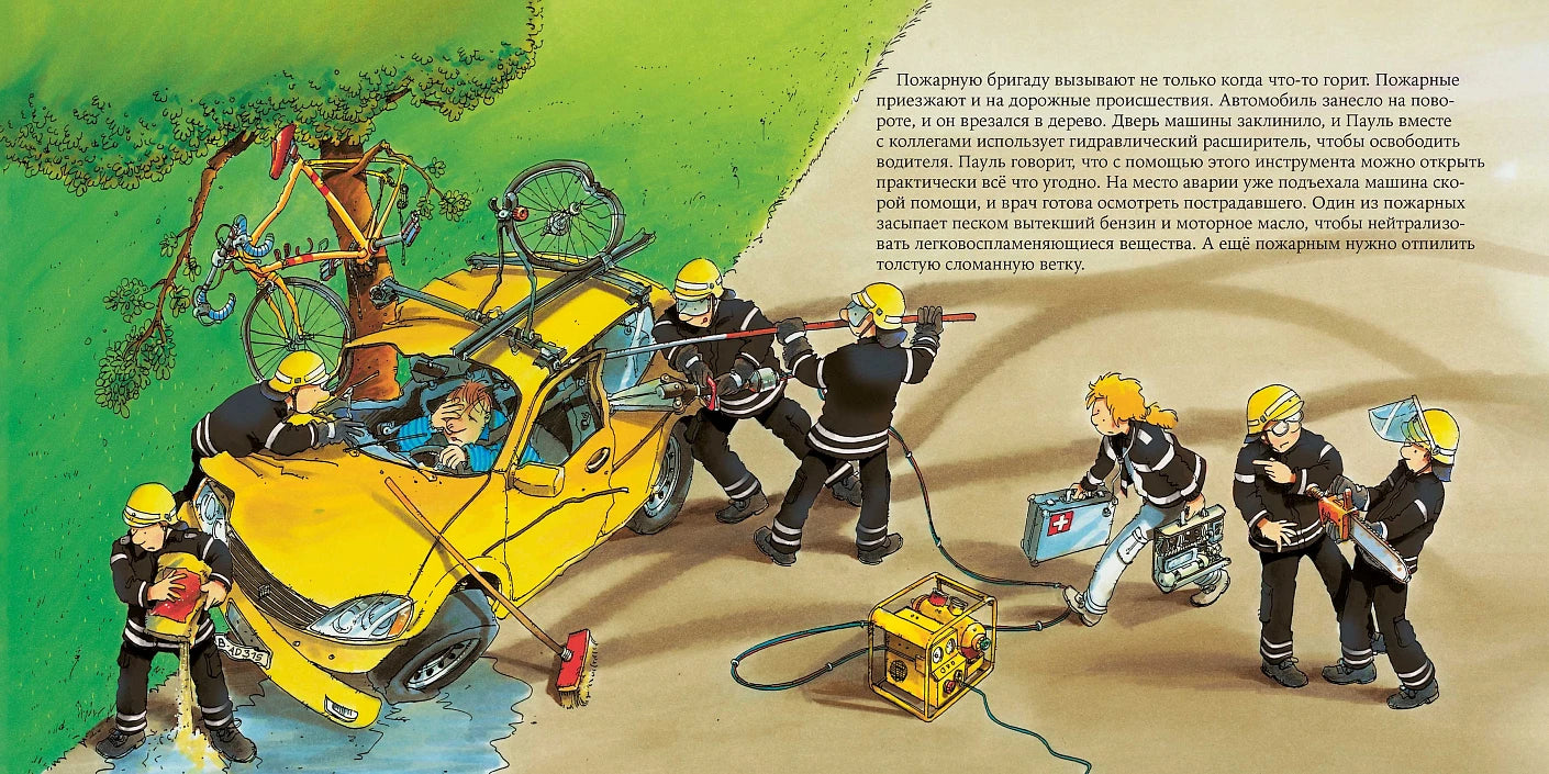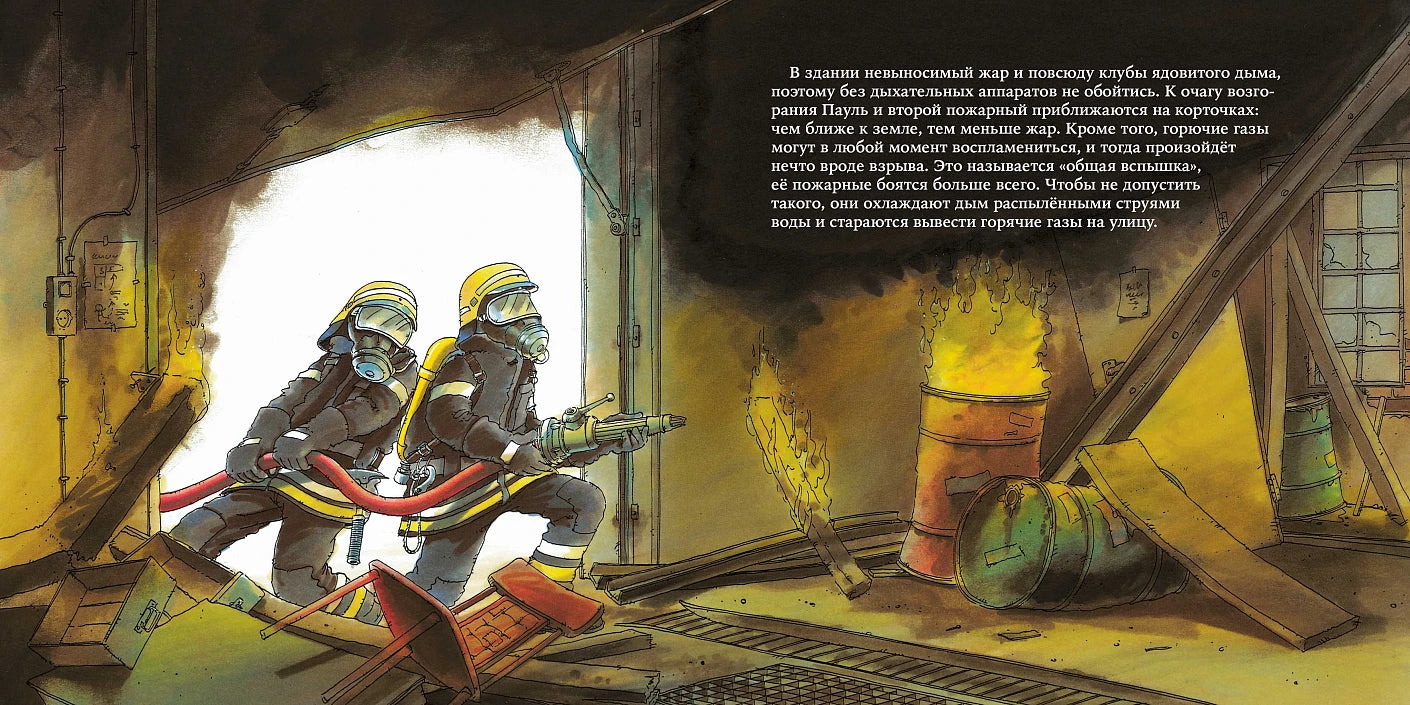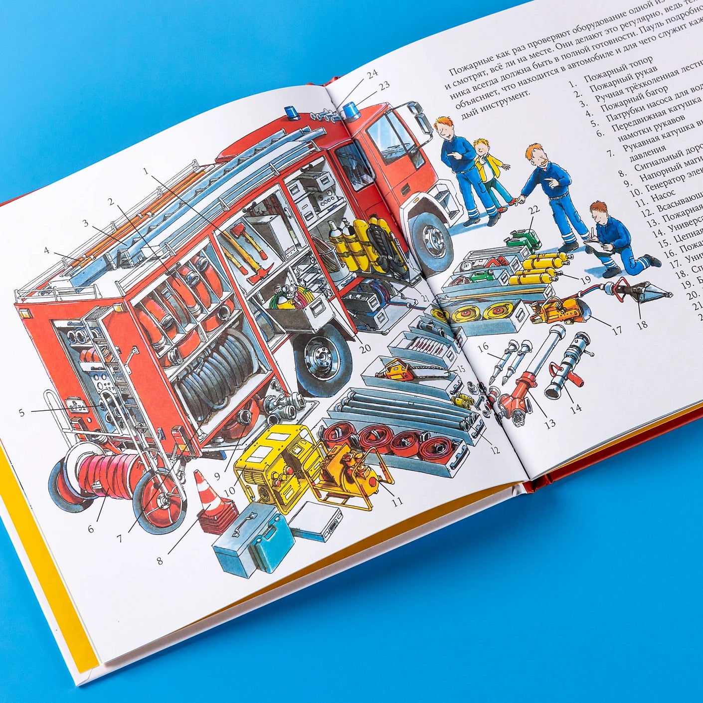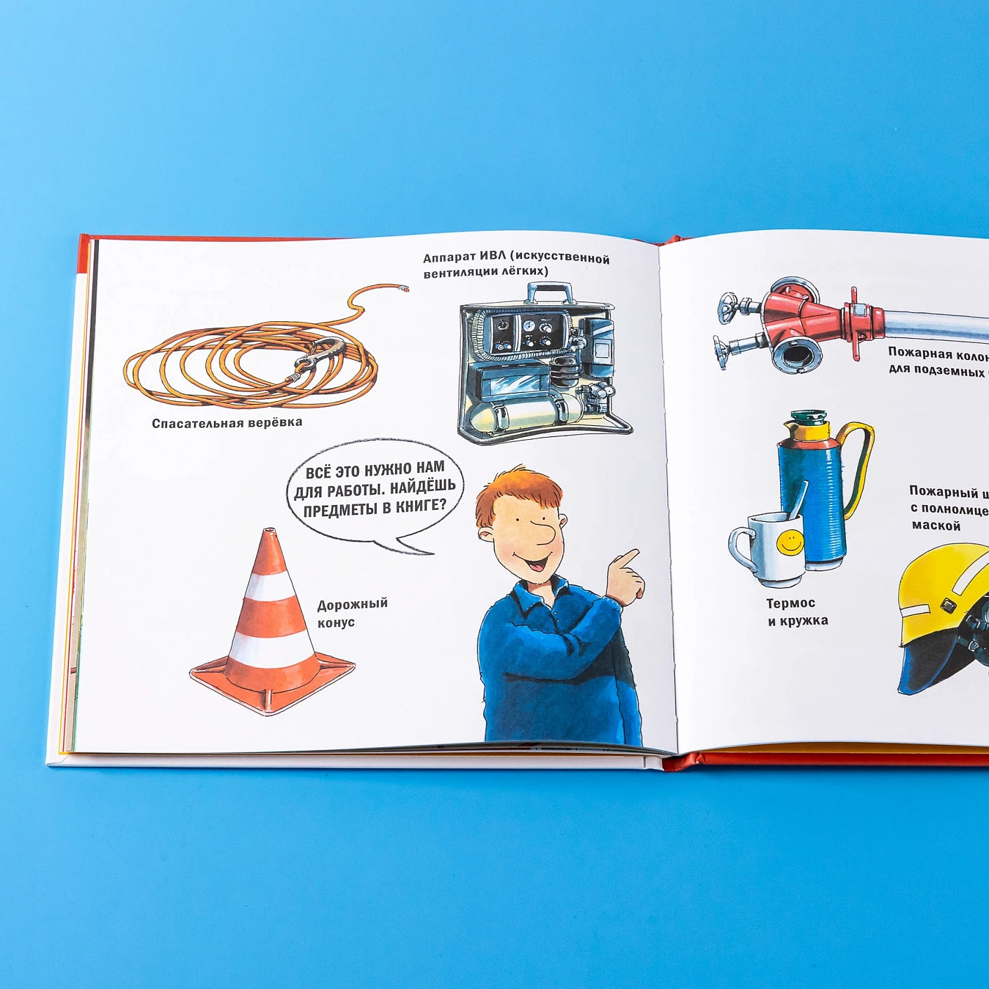 Все книги построены по принципу «один день из жизни...»: герои историй, дети, приходят в гости на работу к своим взрослым знакомым. В этой книге мальчик Свен вместе со своим другом Паулем знакомится с профессией пожарного. Вы узнаете, что находится внутри пожарной машины, что происходит в дежурно-диспетчерском центре, для чего пожарные натягивают штаны на сапоги и многое другое!