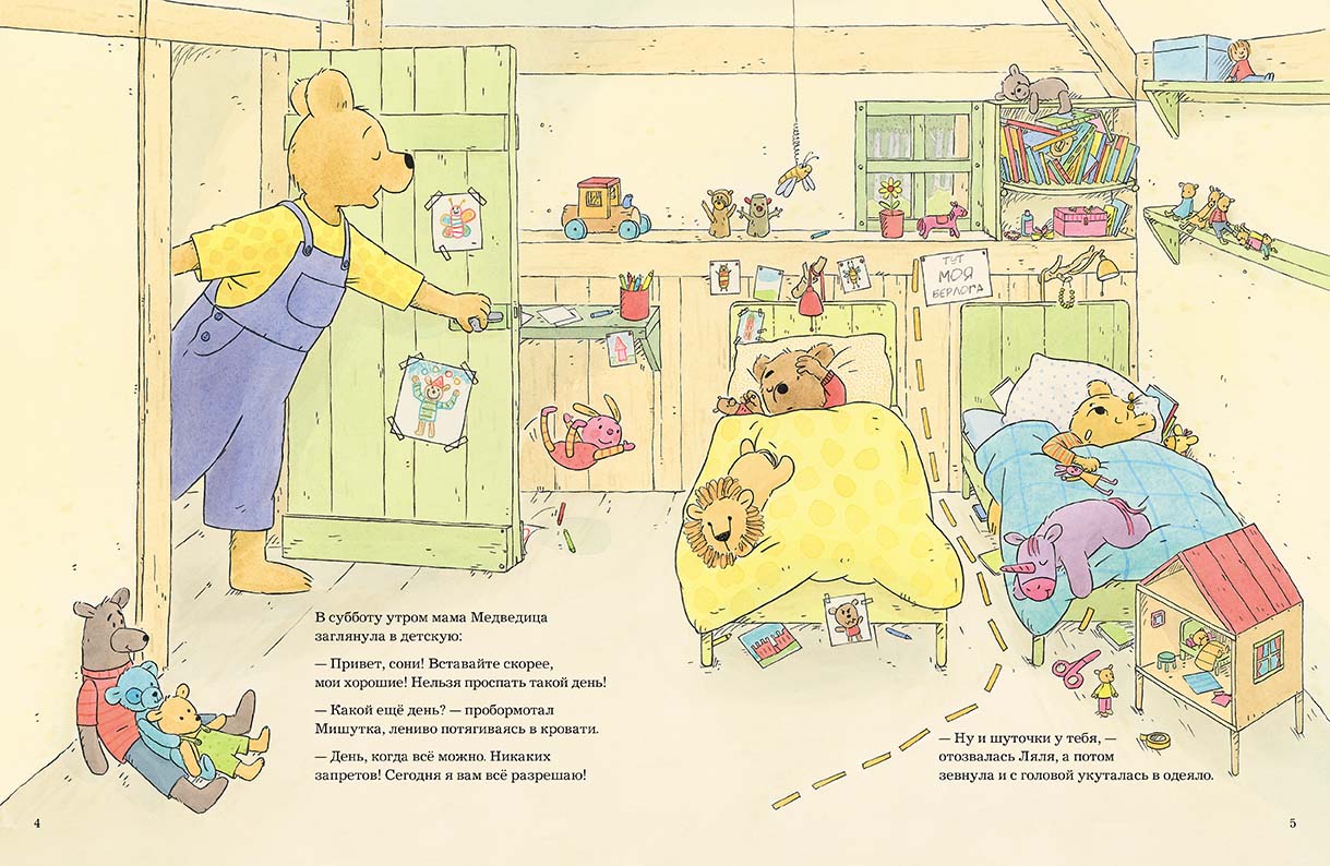 Однажды субботним утром, к огромному удивлению Ляли и Мишутки, мама Медведица объявила, что их ждёт очень необычный день: день, когда всё можно. Мама пообещала, что сегодня ничего не будет запрещать своим медвежатам, и они смогут делать всё что захотят.