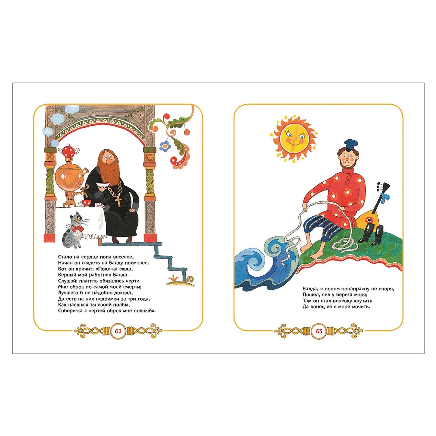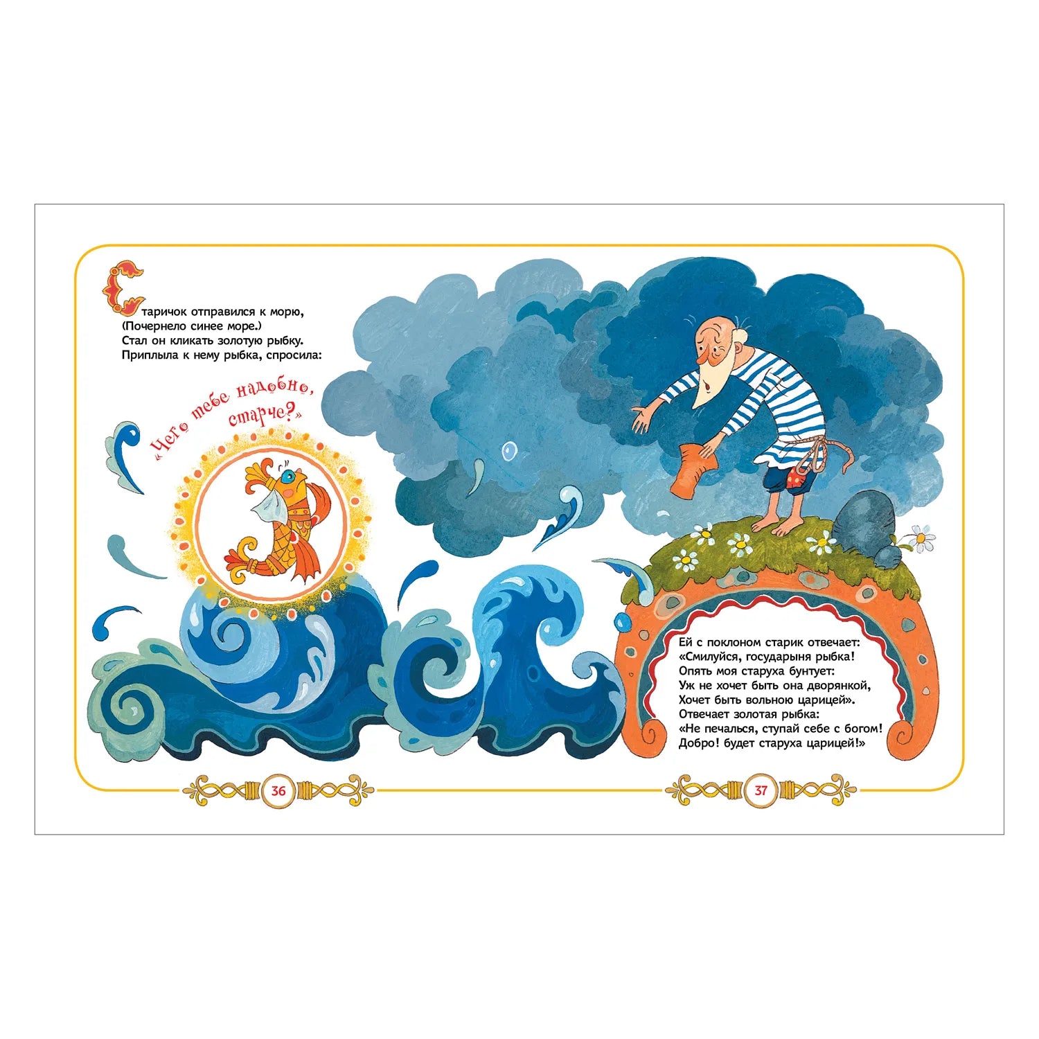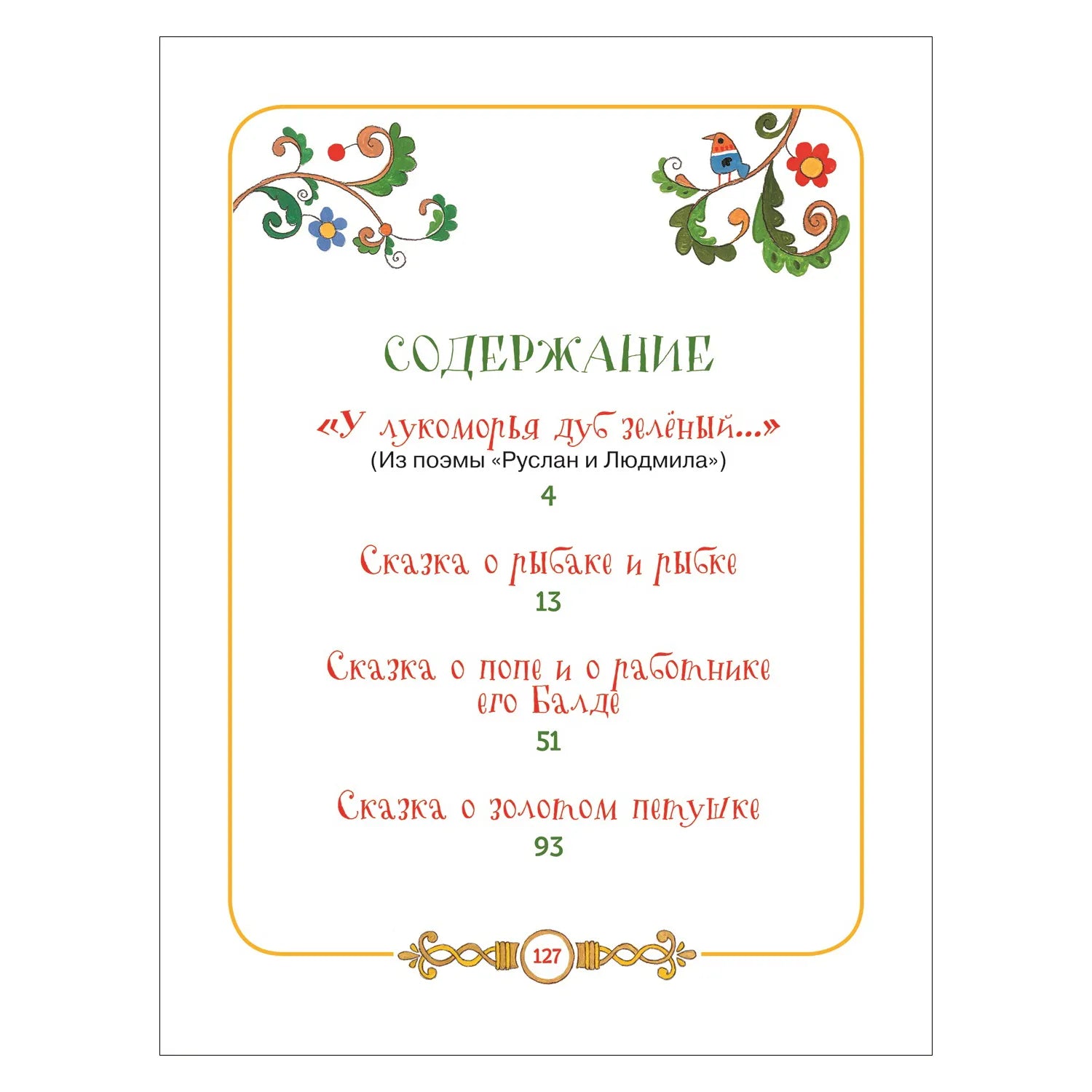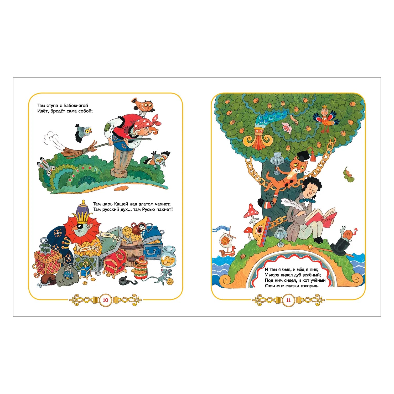 А. С. Пушкин писал свои сказки не для детей, однако они давно стали классикой именно детской литературы. Уникальность этого издания состоит в том, что оно подготовлено с учетом особенностей детского восприятия: текст разбит на небольшие фрагменты и каждый из них проиллюстрирован. Это помогает малышу не только лучше воспринимать услышанное, усваивать, запоминать, но и делает совместное чтение интересным и занимательным. В книгу вошли «Сказка о рыбаке и рыбке», «Сказка о попе и о работнике его Балде», «Сказка о золотом петушке», а также отрывок из поэмы «Руслан и Людмила» «У лукоморья дуб зеленый…».