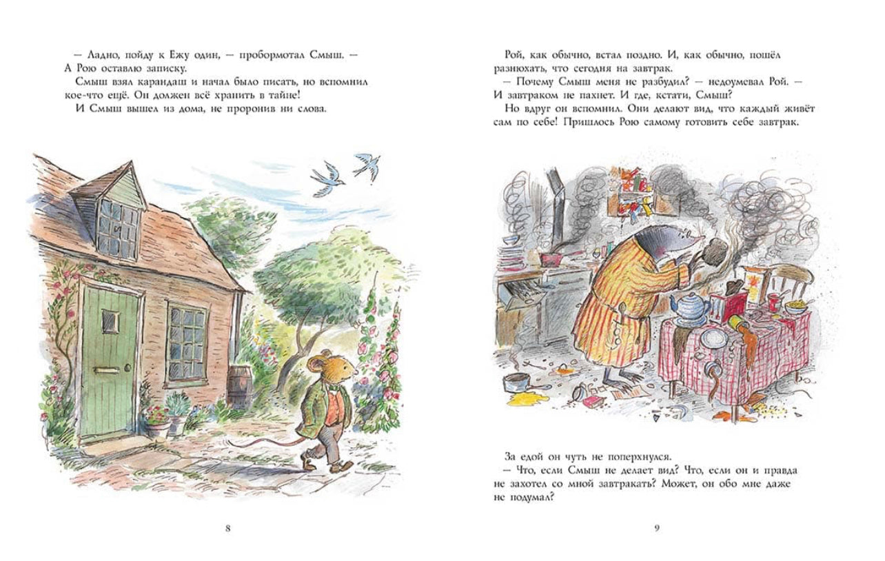 Милые истории о двух неразлучных друзьях Смыше и Рое сочинила британская писательница Джойс Данбар. А нарисовал замечательный британский художник Джеймс Мейхью, которому так пришлась по душе эта симпатичная парочка, что он наполнил их мир вещами и предметами из своей собственной жизни.