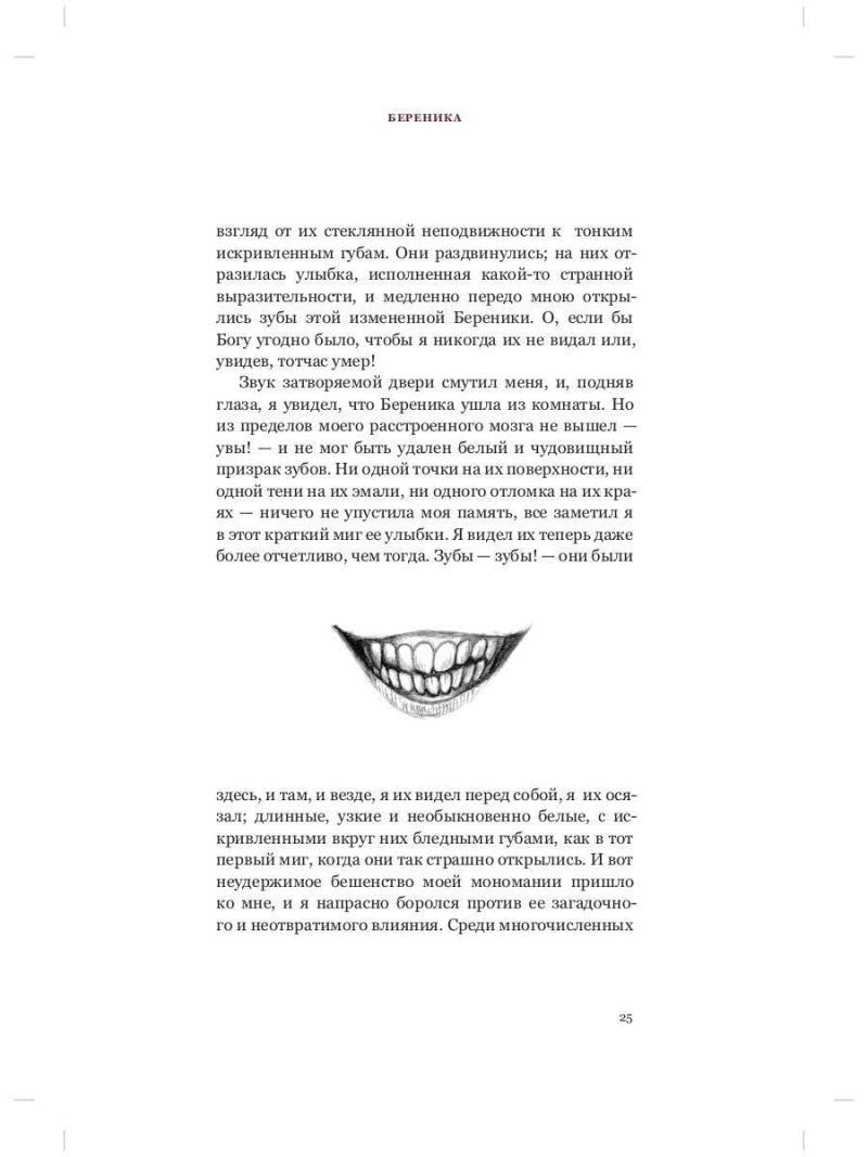 • Книга I - в книгу вошли известнейшие «страшные» рассказы Эдгара По — «Береника», «Черный кот», «Остров феи», «Падение дома Эшер», «Овальный портрет» и другие в переводах Константина Бальмонта, Михаила Энгельгардта и Льва Уманца.