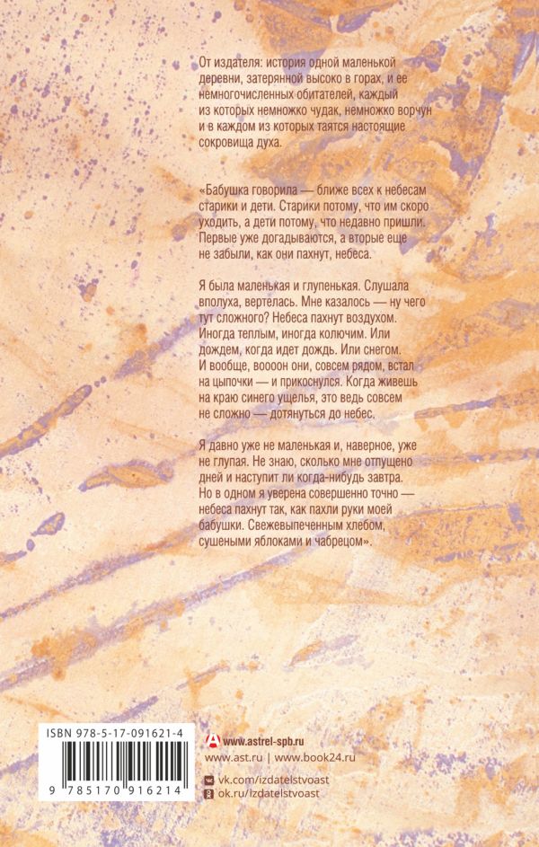 История одной маленькой деревни, затерянной высоко в горах, и ее немногочисленных обитателей, каждый из которых немножко чудак, немножко ворчун и в каждом из которых таятся настоящие сокровища духа.
