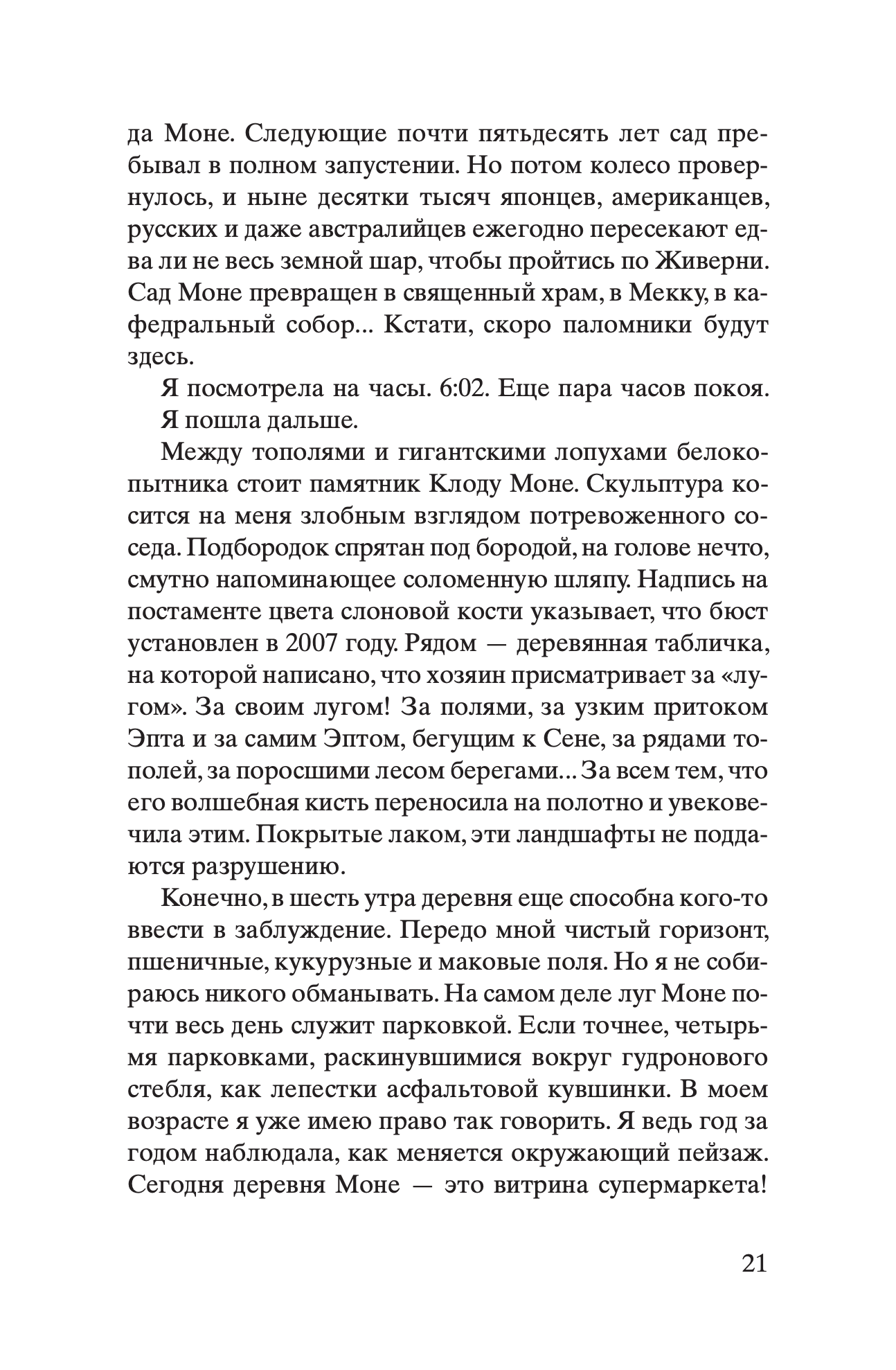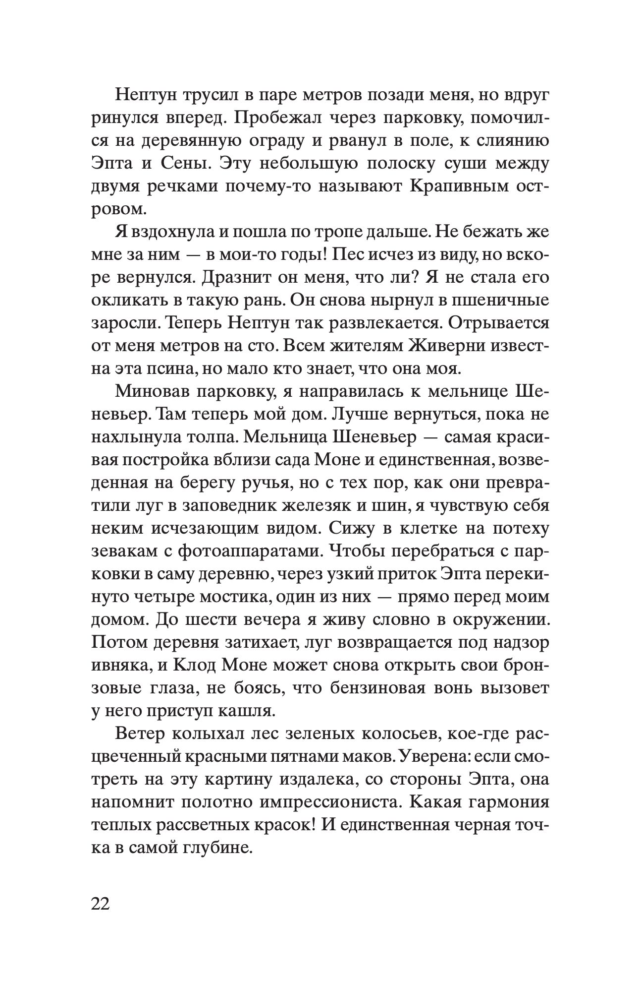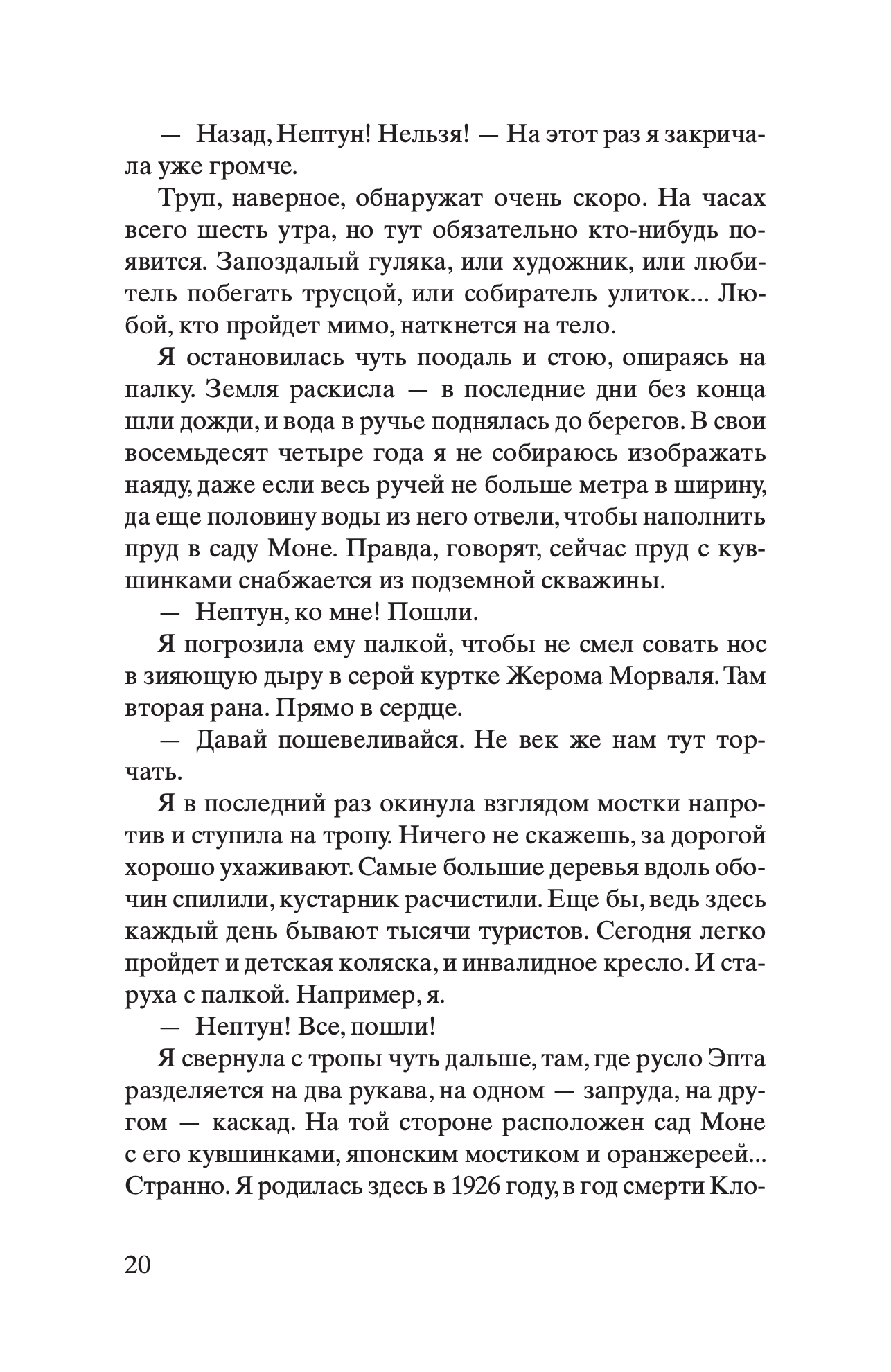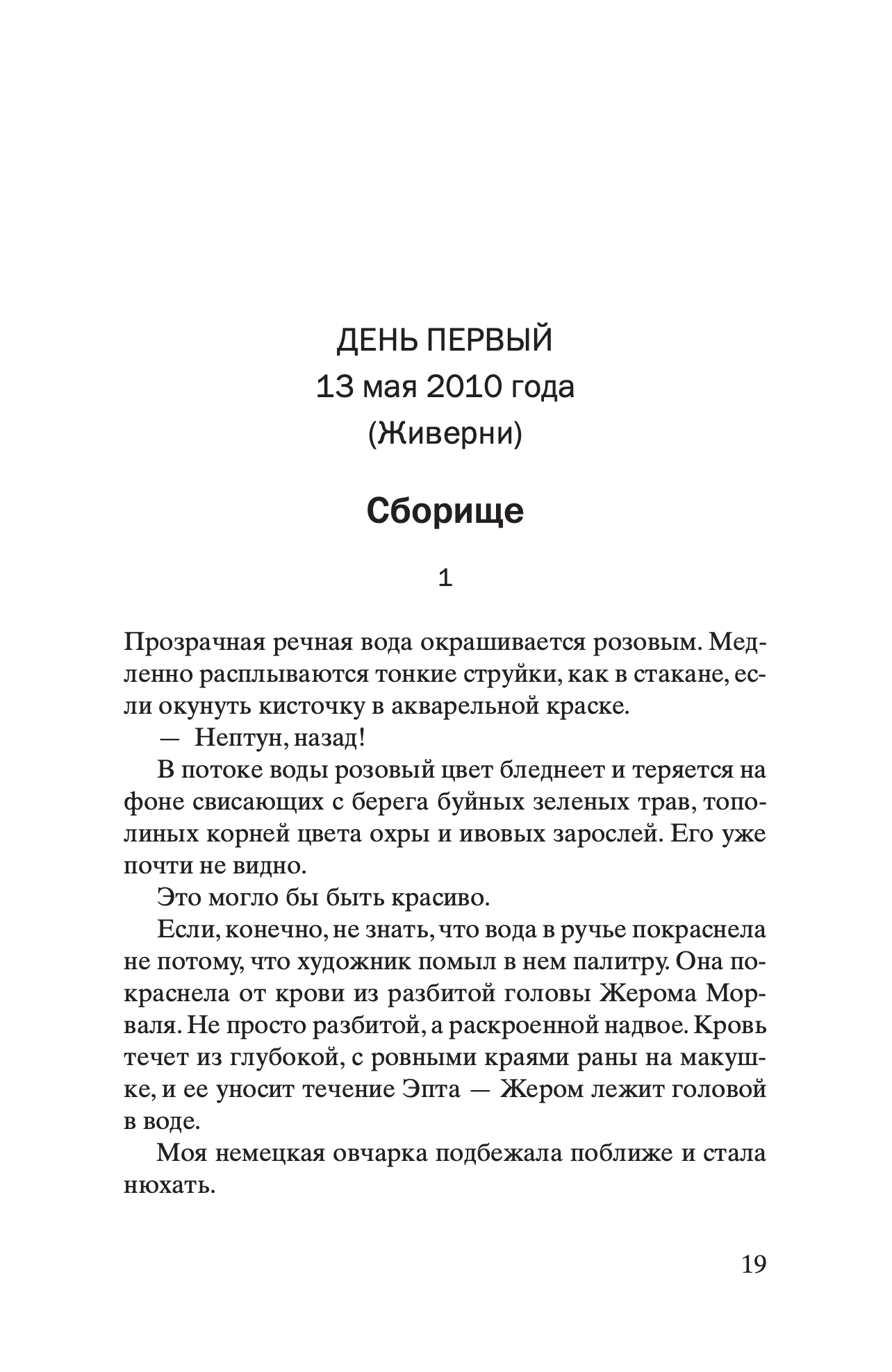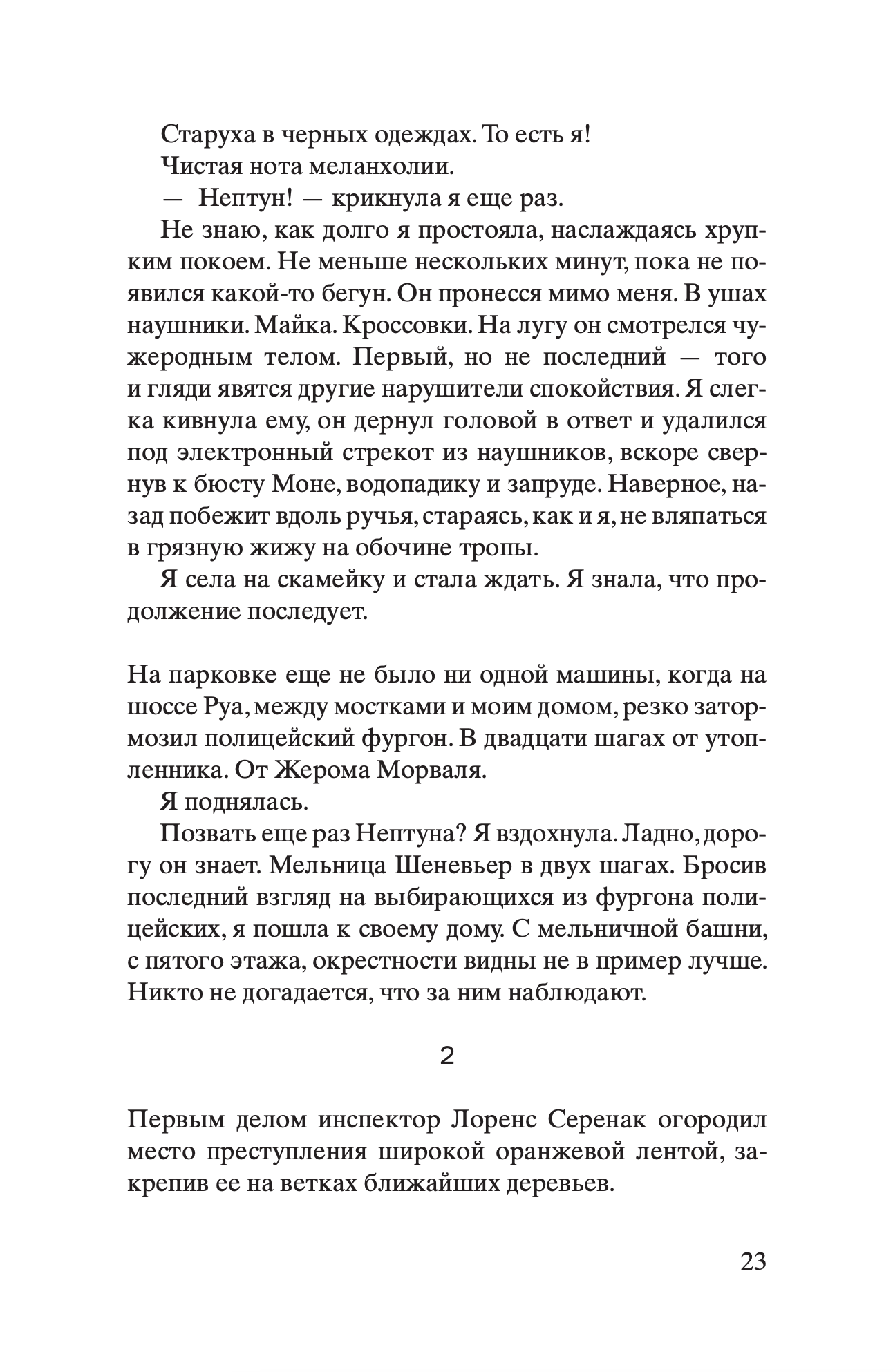 Девочка, любящая рисовать, невероятно красивая школьная учительница и старуха, которая видит все… В деревушке Живерни у реки найдено тело ребенка. Лоренс Серенак не так давно выпустился из полицейской школы, и это его первое расследование. Подозреваемых у него хоть отбавляй. Но главное — преступление очень похоже на давнее, случившееся в 1937 году. Может, они как-то связаны? Только старуха с совиным взглядом знает это. Только старуха знает, что история может повториться и девочка, что любит рисовать, и красавица-учительница в огромной опасности…