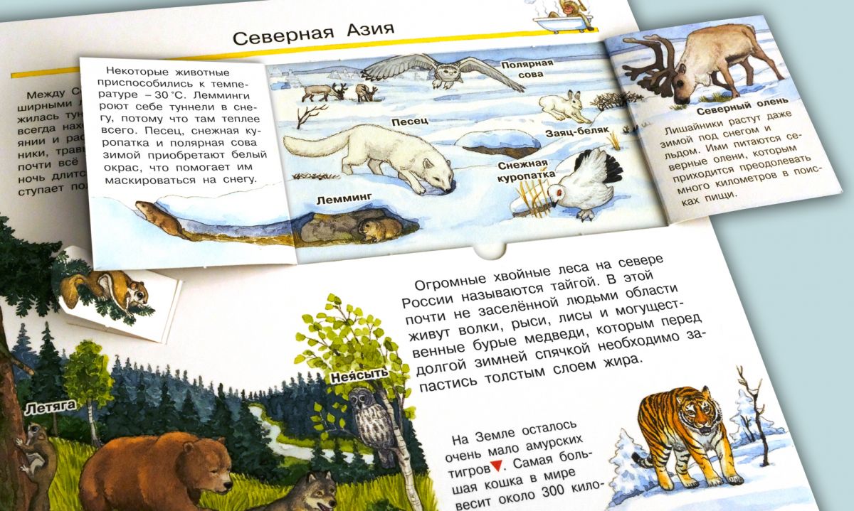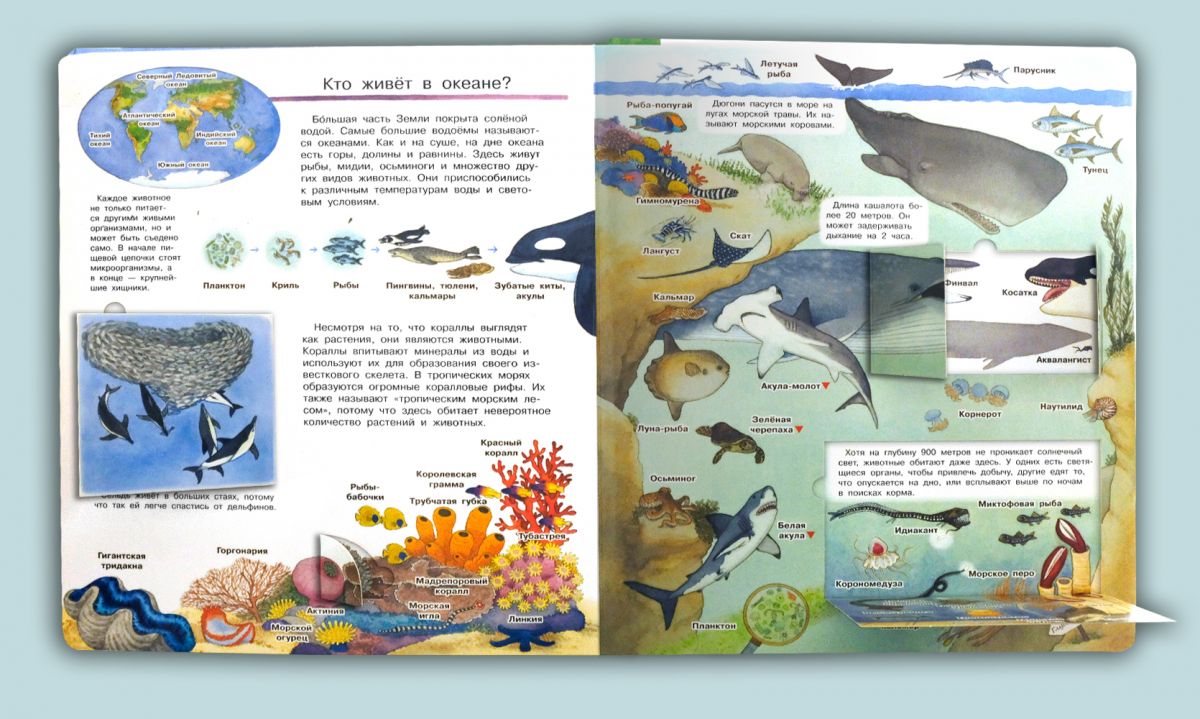 Тщательно прорисованные картинки можно рассматривать часами, замечая и открывая для себя новые удивительные факты, а многочисленные окошки и клапаны с различной дополнительной информацией не только дадут необходимые пояснения и исчерпывающие ответы на вопросы ребёнка, но и превратят чтение в увлекательную игру, разовьют внимание и любознательность.