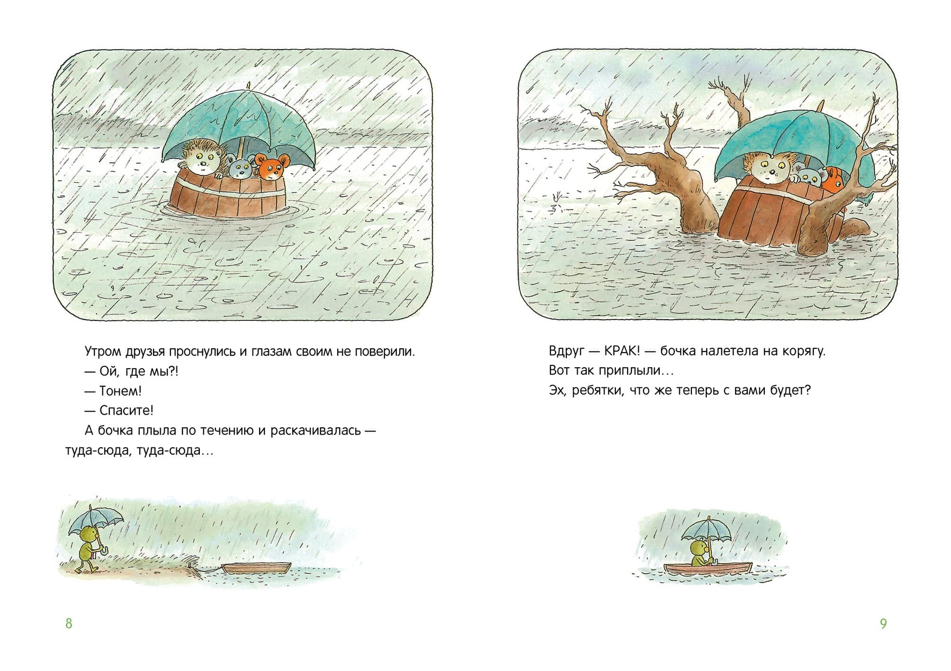 С друзьями всё время что-нибудь происходит. Вот они конструируют из перьев курицы куролёт и ухитряются взлететь. Вот они придумали, как полакомиться виноградом, висящим слишком высоко: меткий выстрел по ягодам из рогатки – и виноградный сок течет прямо в рот. А если к ящику приделать коньки и поставить парус, получится отличный кораблик на коньках. Можно еще выдолбить тыкву и получить из нее сразу и санки – чтобы скатиться с горы, и лодку – чтобы плавать в полынье.