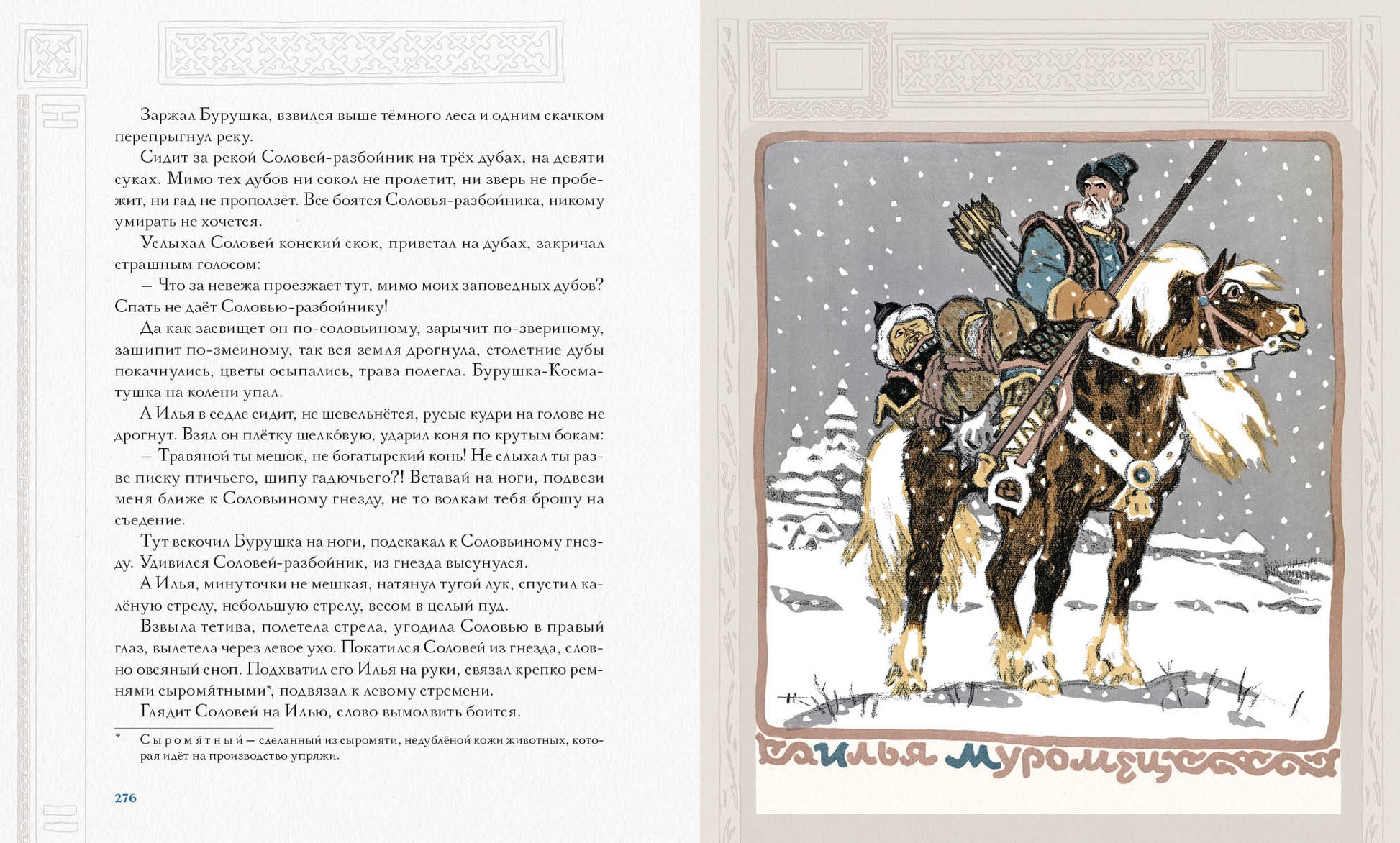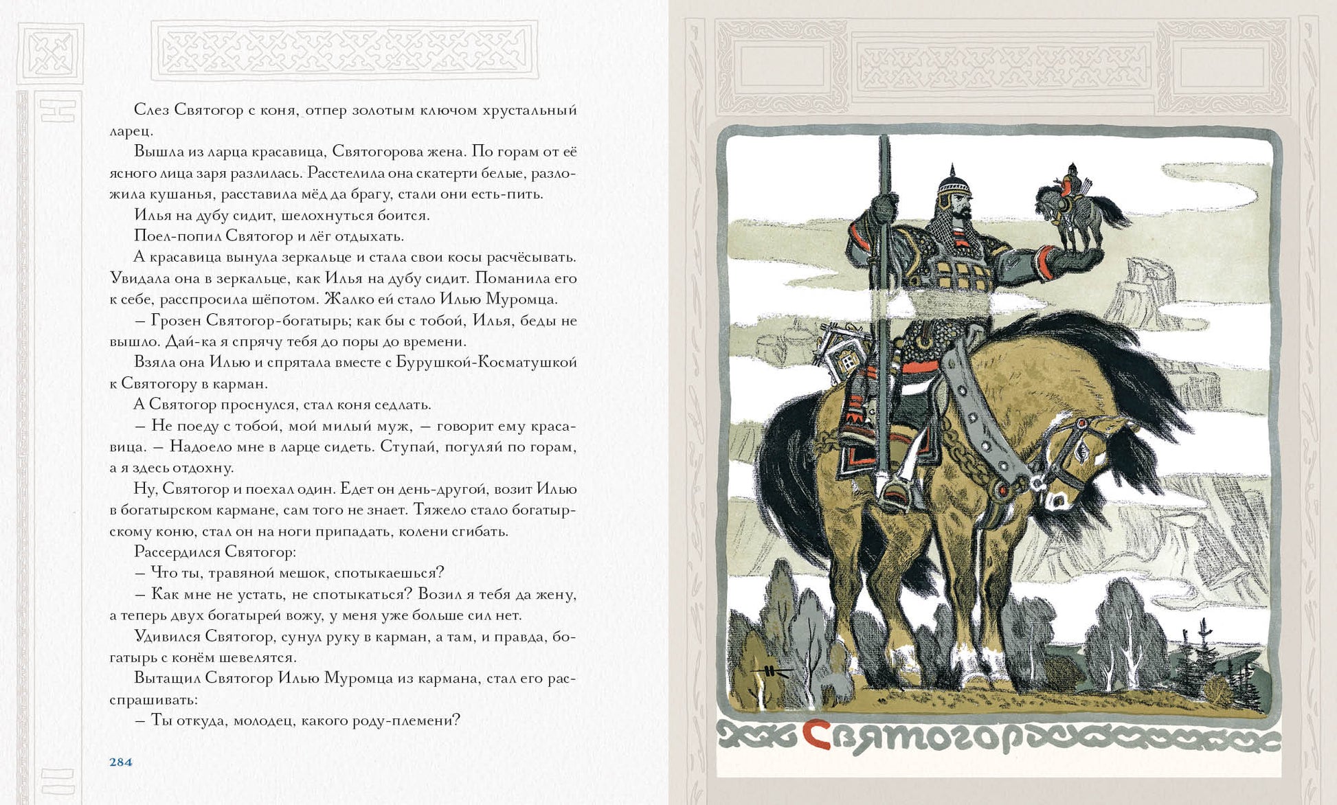 А следом ждут знакомства и герои былин — могучие богатыри Вольга Всеславьевич и Микула Селянинович, Илья Муромец, Добрыня Никитич и Алёша Попович, — главные защитники земли русской, обладающие великой силой, поразительной храбростью и благородством помыслов и поступков.