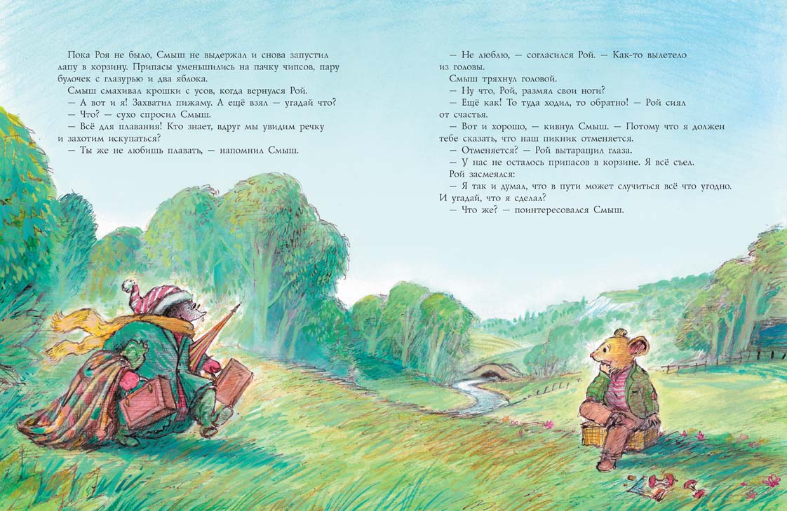 Милые истории о двух неразлучных друзьях Смыше и Рое сочинила британская писательница Джойс Данбар. А нарисовал замечательный британский художник Джеймс Мейхью, которому так пришлась по душе эта симпатичная парочка, что он наполнил их мир вещами и предметами из своей собственной жизни.